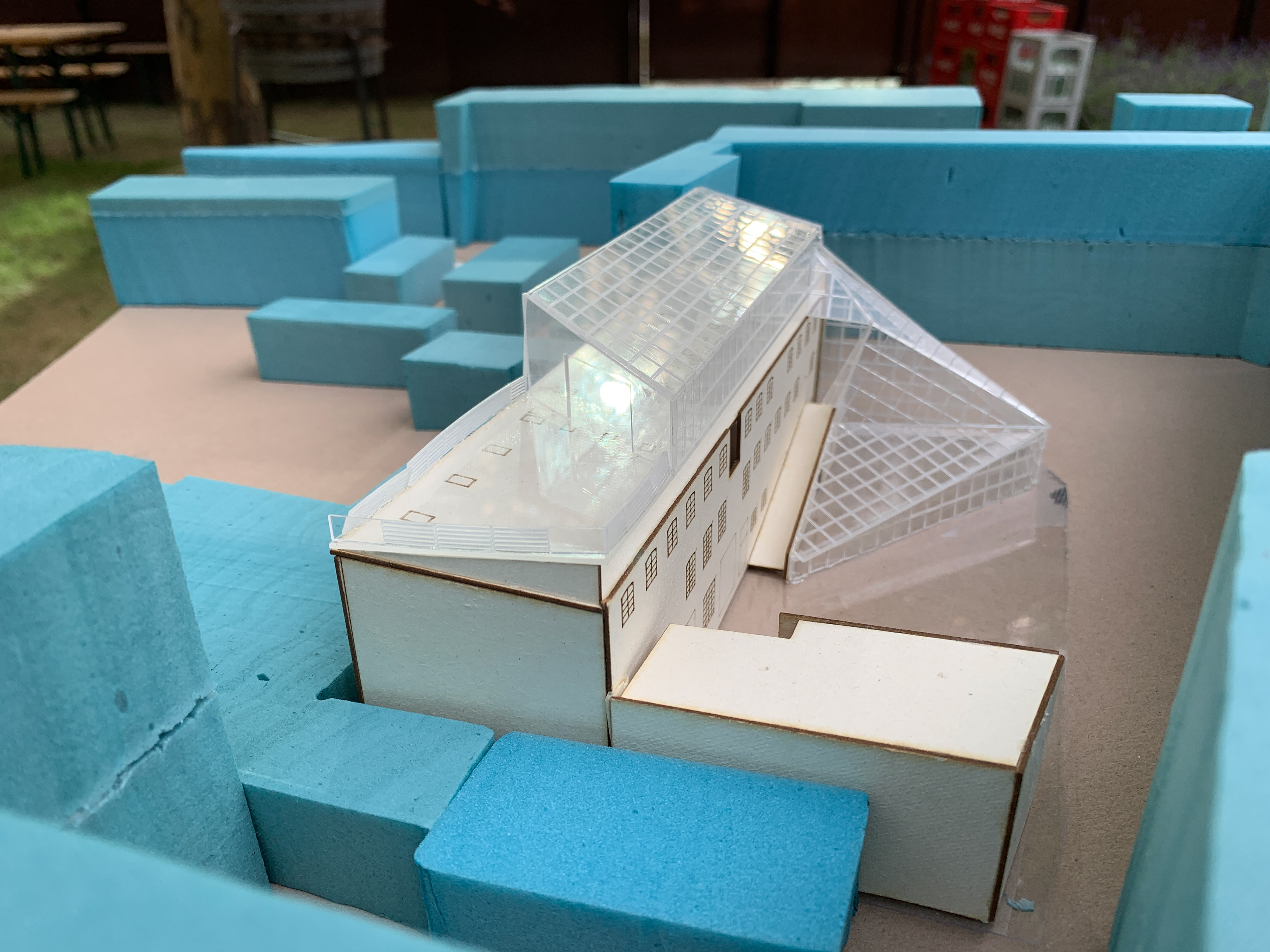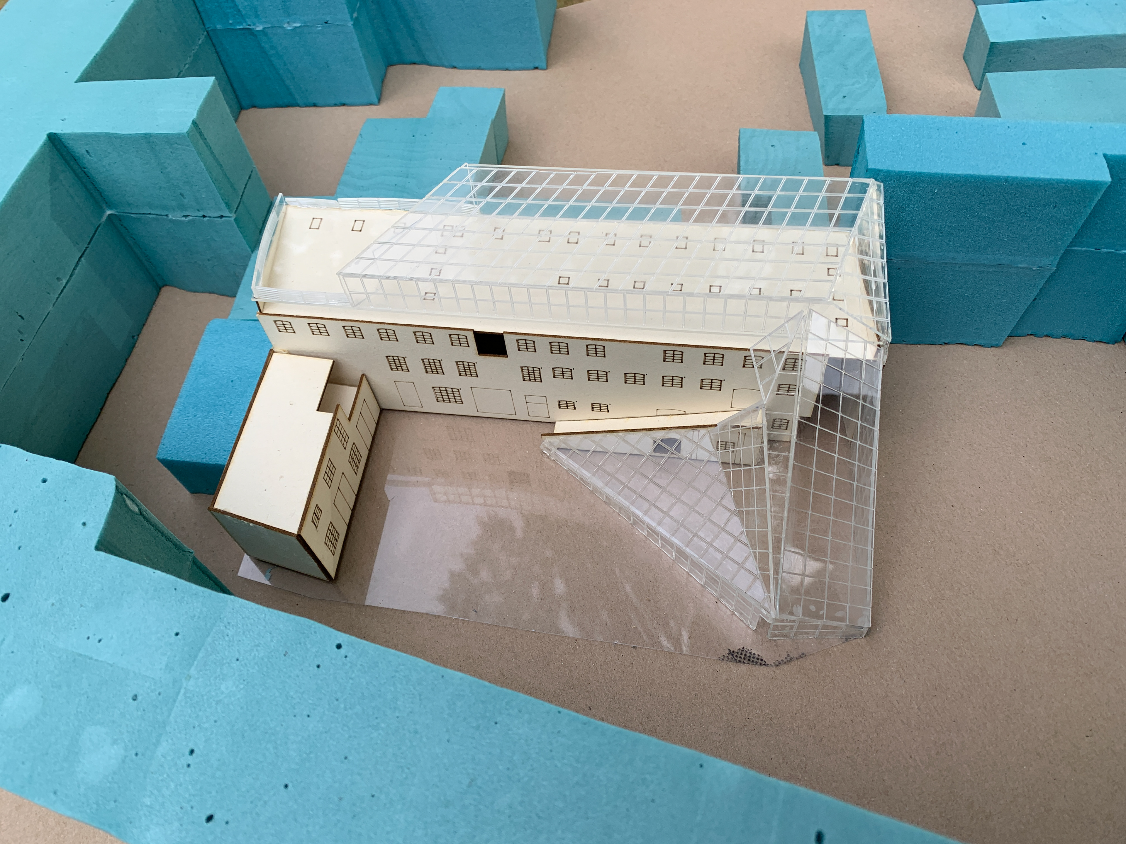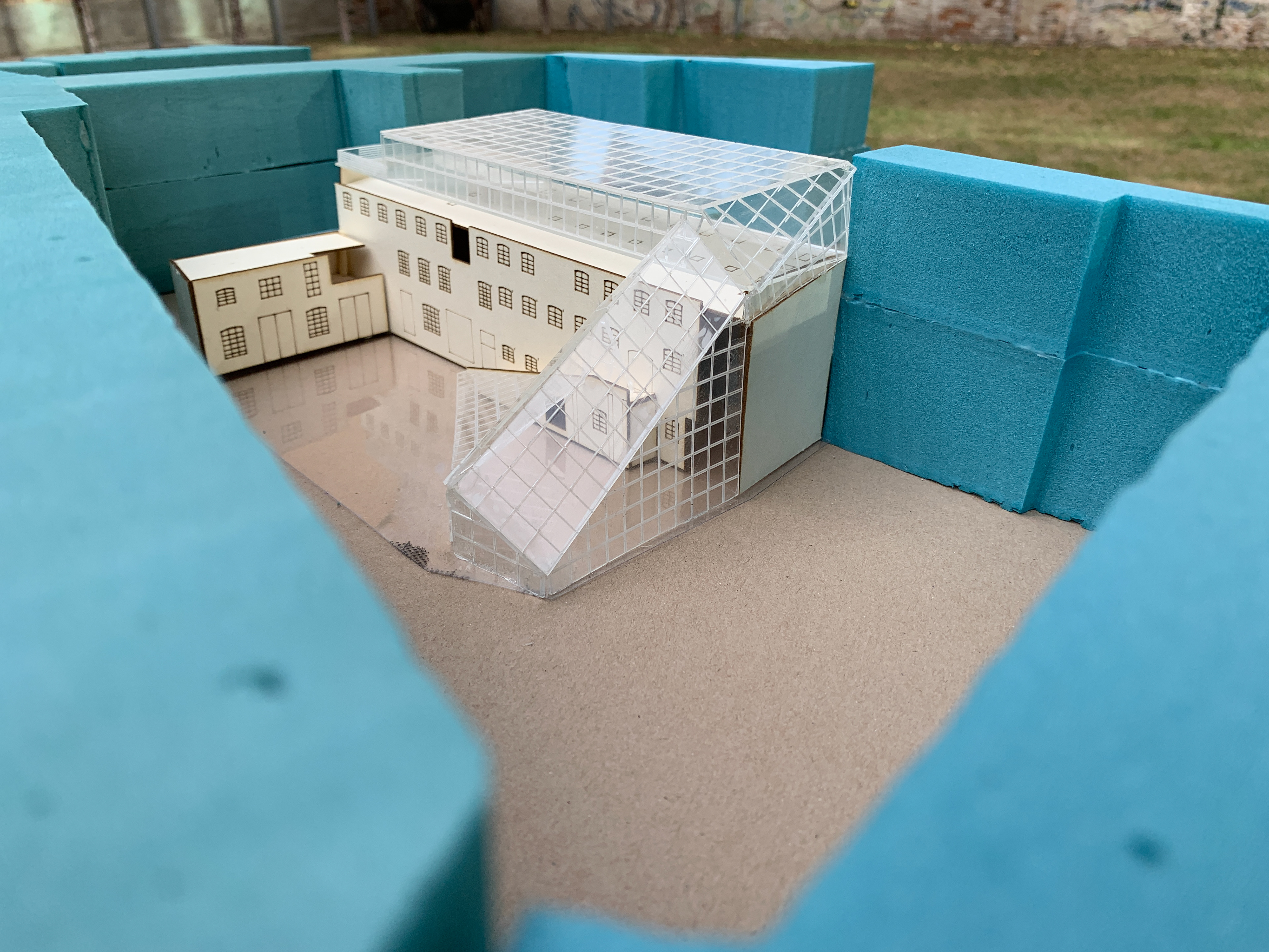 This studio was held during a month long study abroad through ISU in Berlin, Germany. The studio brought together architecture and urban design students from ISU, City College in New York, and the German University of Technology in Oman to study how computer aided simulations in radiation and daylighting could improve the design of passive heating and cooling strategies particularly in glass facades. The studio brief prompted each group to design an addition to a 19th century horse stable that had recently been converted into an art studio in the heart of Berlin. The addition included new visitor spaces and additional square footage for the studios. Using software simulations in Grasshopper, Ladybug, Diva, MIT Coolvent, and Sefaira we designed and iterated with the goal of minimizing the buildings’ carbon footprint and overall energy intake. We made visits to the site, a glass factory, and numerous architecture firms in Berlin to research and learn about passive techniques that could be used in this context.